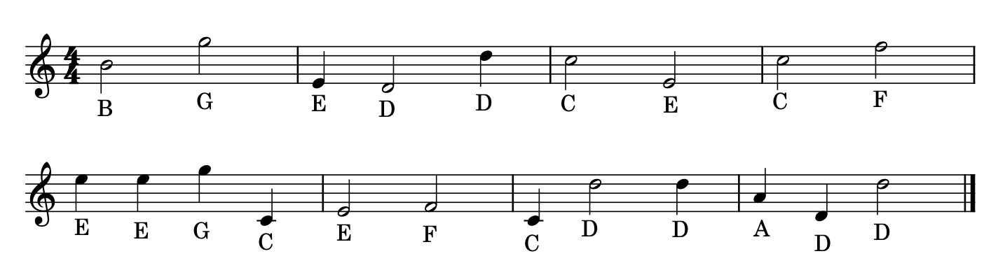For exercises 11 through 28, write in the pitch letter names like in the example shown below.